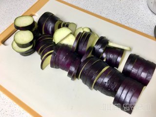 또한 가지를 너무 얇게 썰면 조리 중 쉽게 부서지므로, 1cm 정도의 도톰한 크기로 써는 것이 가장 좋아요.